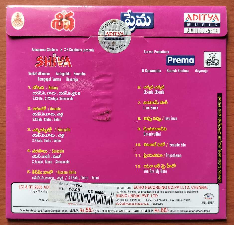 SHIVA / PREMA – layaraja Telugu Audo Cd