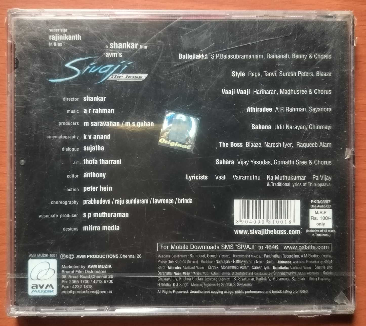 SIVAJI – A.R. Rahman Tamil Audio Cd (FACTORY SEALED PACK)