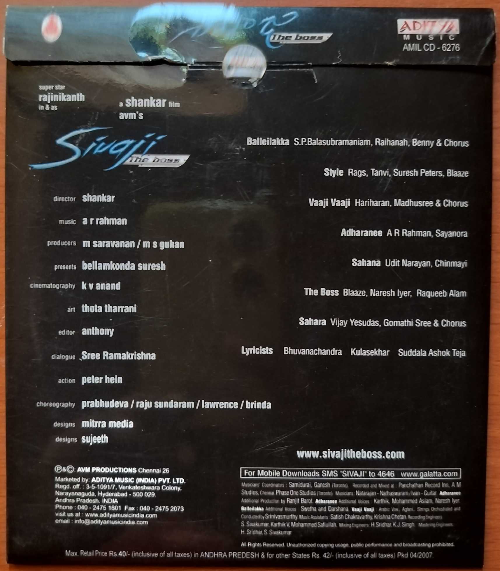 SIVAJI THE BOSS – A.R. Rahman Telugu Audio Cd
