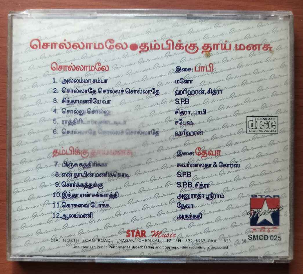 SOLLAMALE / THAMBIKU THAI MANASU – Bobby & Deva Tamil Audio Cd