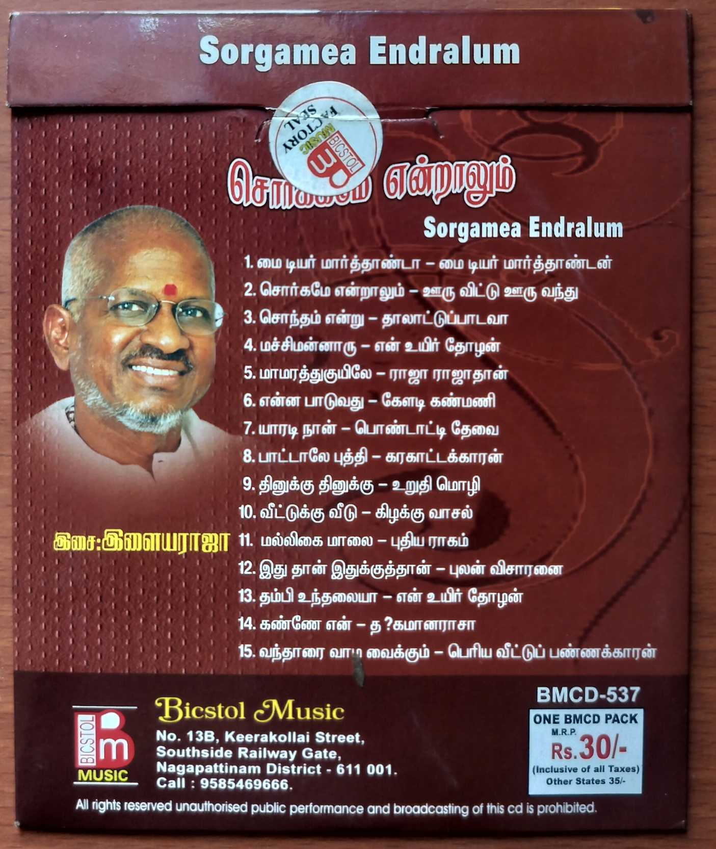 SORGAMAE ENDRALUM TAMIL FILM SONGS – Ilaiyaraaja Tamil Collection Audio Cd