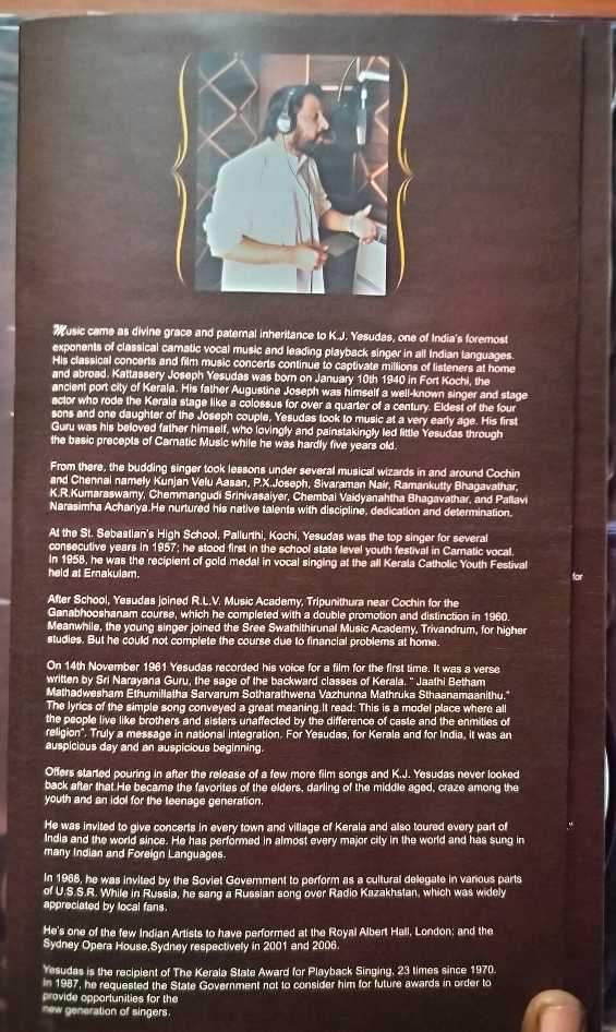 Description : Yesudas Premium Edition Rare Collection Audio Cd