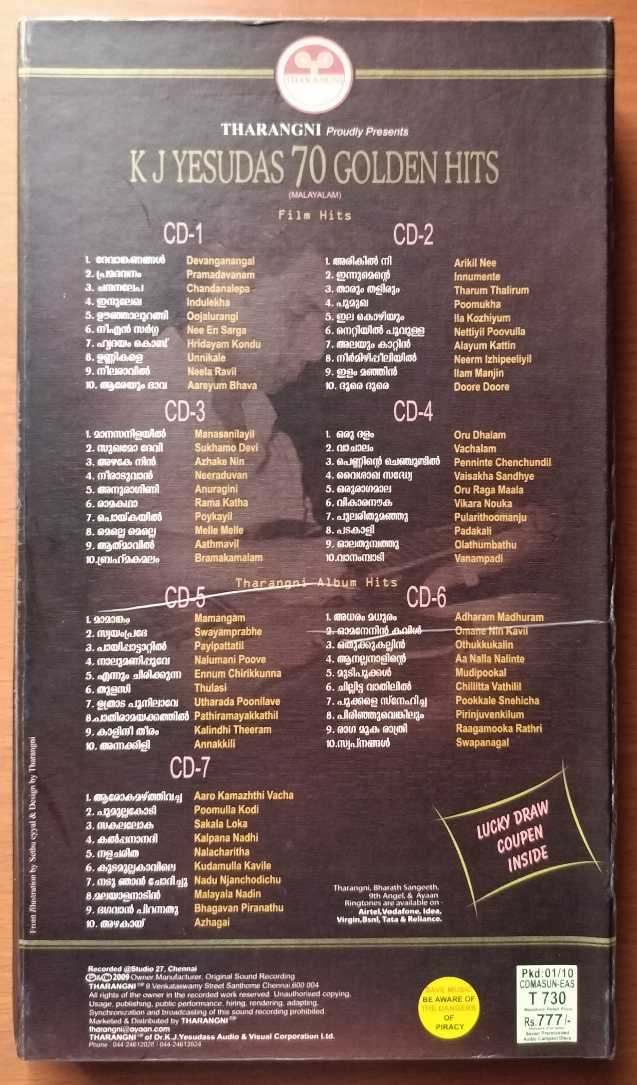 THARANGNI PROUDLY PRESENTS K.J. YESUDAS 70 GOLDEN HITS – Malayalam Film Songs & Tharangni Album Hits Premium Edition 7CD Pack Audio Cd