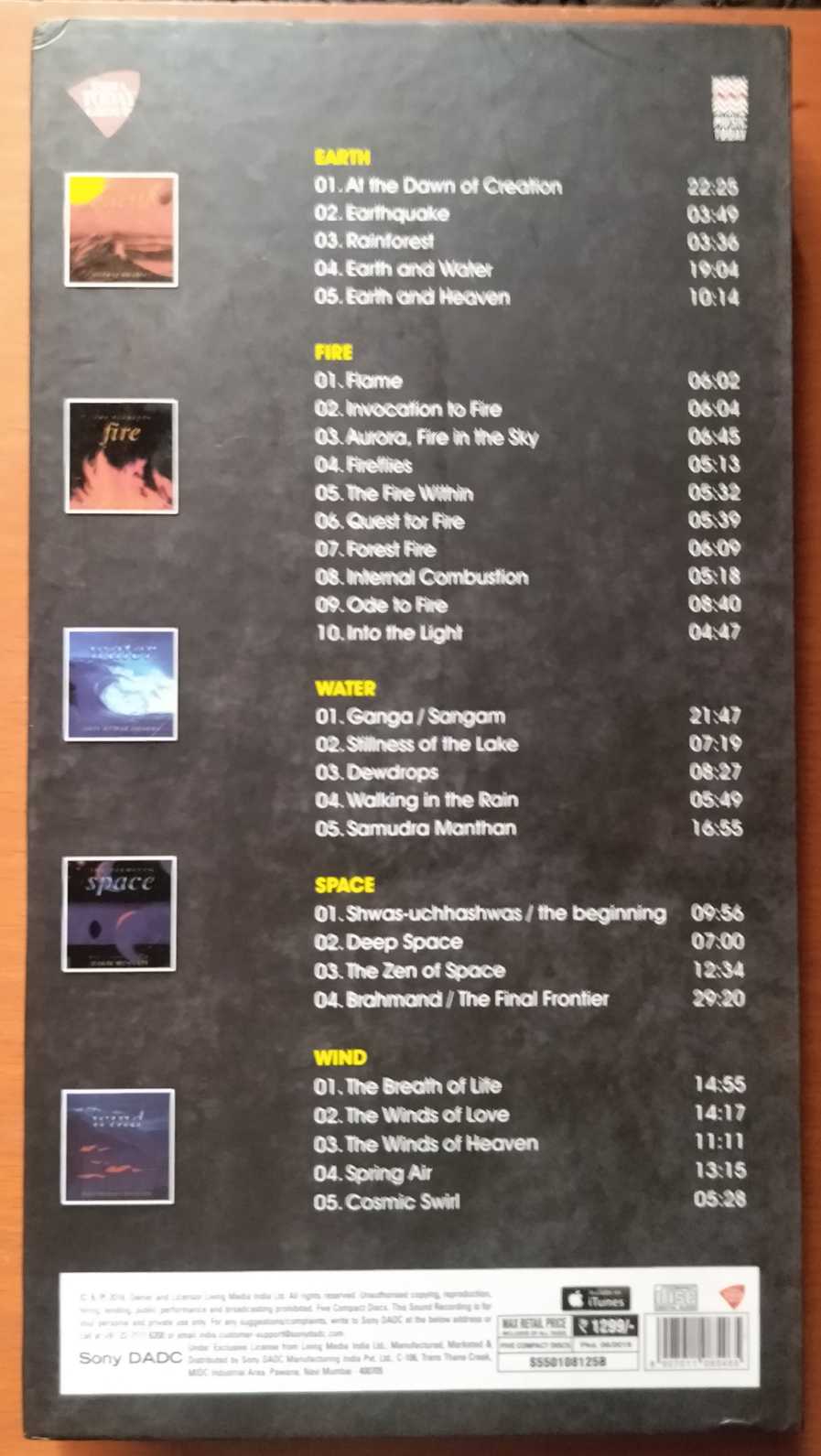 THE ELEMENTS EARTH / FIRE / WATER / SPACE / WIND – Indian Classical Instrumental Premium Edition 5CD Pack Audio Cd