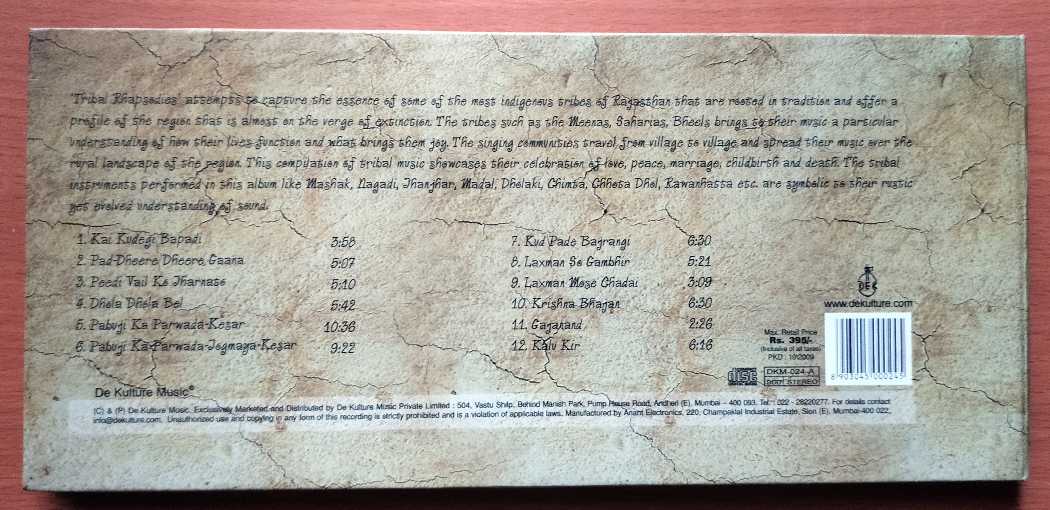 THE TRIBAL RHAPSODIES MUSICAL TREASURES OF RAJASTHANI TRIBES – Indian Classical Folk Collection Audio Cd