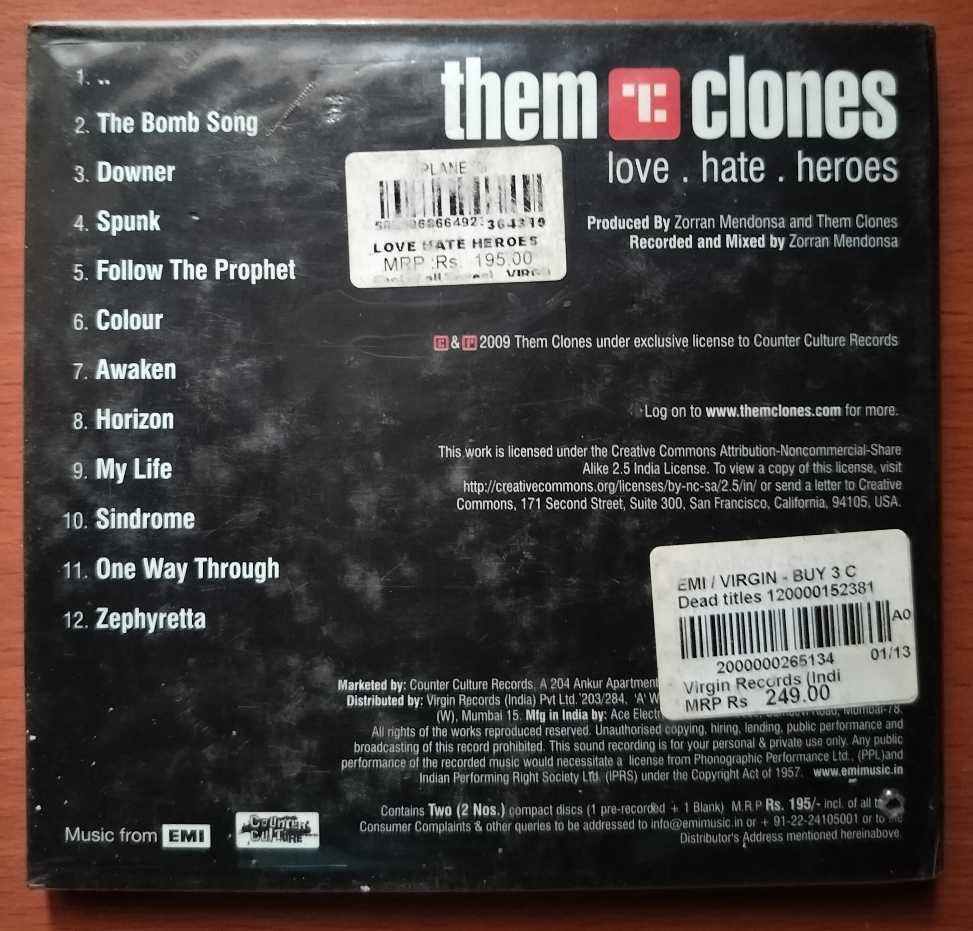 THEM CLONES LOVE. HATE. HEROES – Indian Rock Album Audio Cd (FACTORY SEALED PACK)