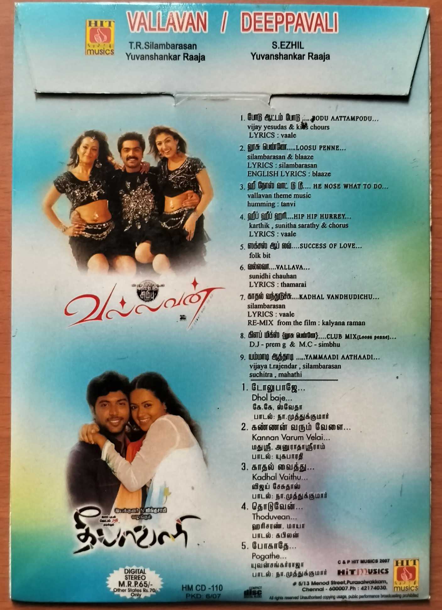 Home » Shop » VALLAVAN / DEEPPAVALI – Yuvan Shankar Raja Double Cd Pack Audio Cd
