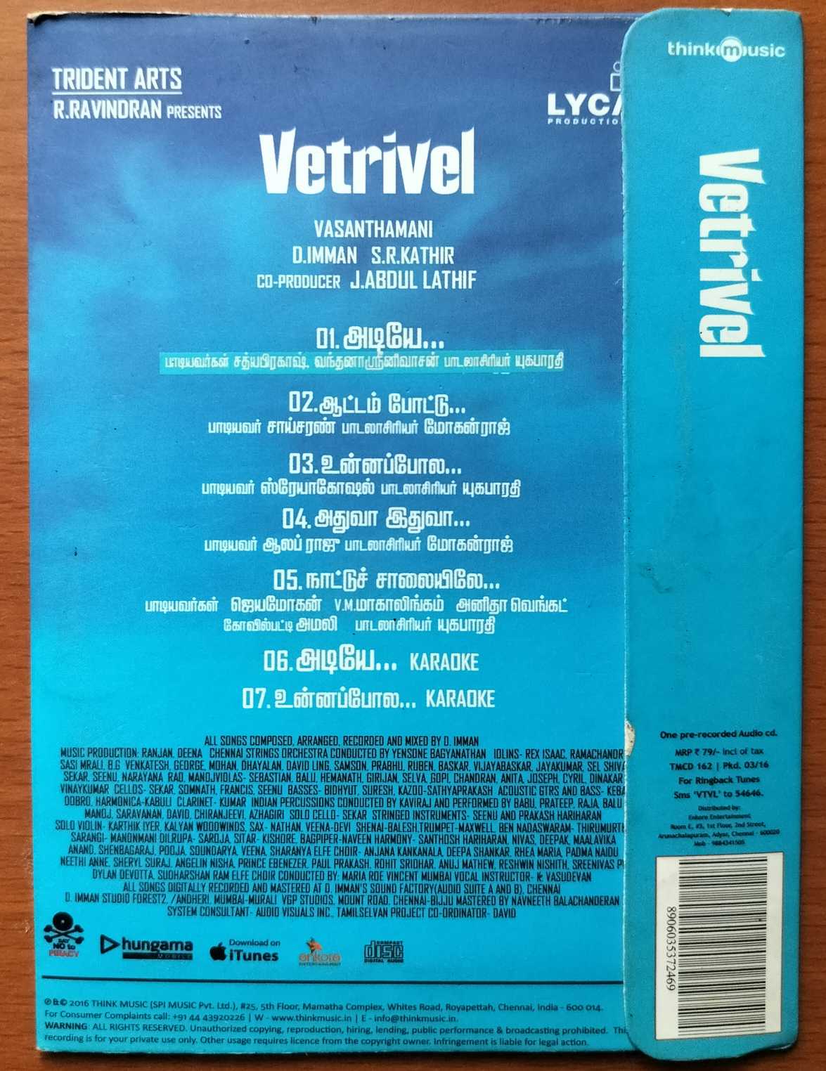 Home » Shop » VETRIVEL – D. Imman Tamil Audio Cd