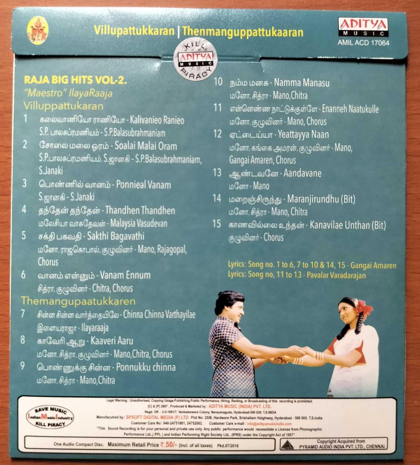 VILLUPATTUKKARAN / THENMANGUPPATTUKAARAN – Ilaiyaraaja Tamil Audio Cd (FACTORY SEALED PACK)