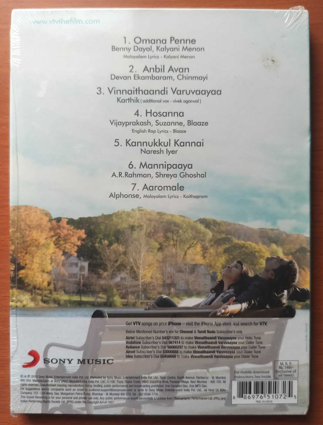 VINNAITHAANDI VARUVAAYAA PREMIUM EDITION PACK – A.R. Rahman Tamil Audio Cd (FACTORY SEALED PACK)