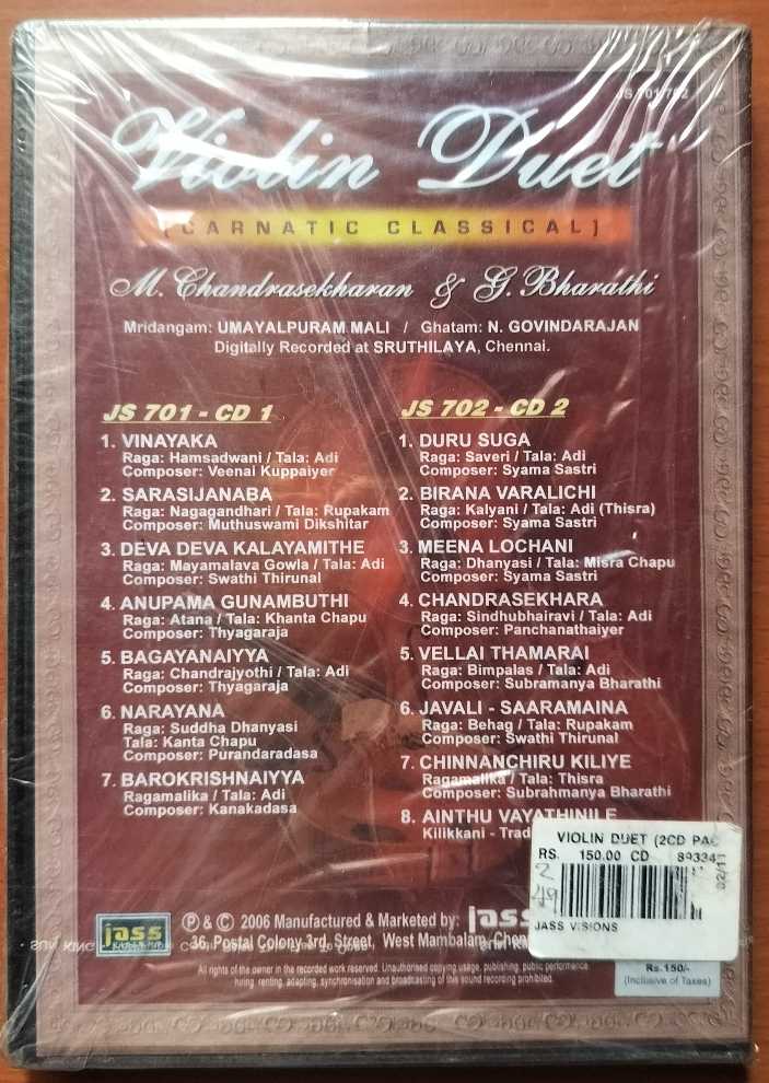 VIOLIN DUET – M. Chandrasekaran & G. Bharathi Carnatic Classical 2CD Pack Audio Cd (FACTORY SEALED PACK)