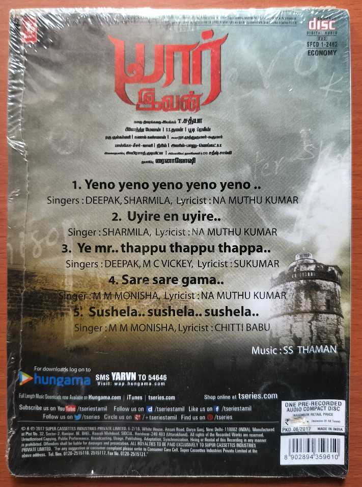YAARIVAN – Thaman. S Tamil Audio Cd (FACTORY SEALE DPACK)