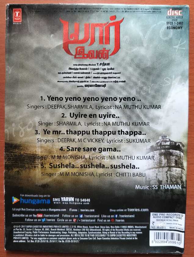 YAARIVAN – Thaman. S Tamil Audio Cd