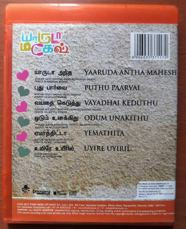 YAARUDA MAHESH – Gopi Sunder Tamil Audio Cd